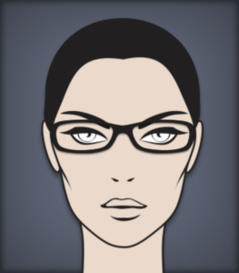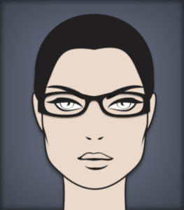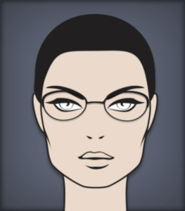 A diamond shaped face is often characterized by high, dramatic cheekbones with a narrow eye line and jaw line. This shape is the rarest of all the shapes. Oval frames that are soft in style typically work best to highlight the eyes and cheekbones. Select frames that have detailing, distinctive brow lines, are rimless or a cat-eye shape for best results.